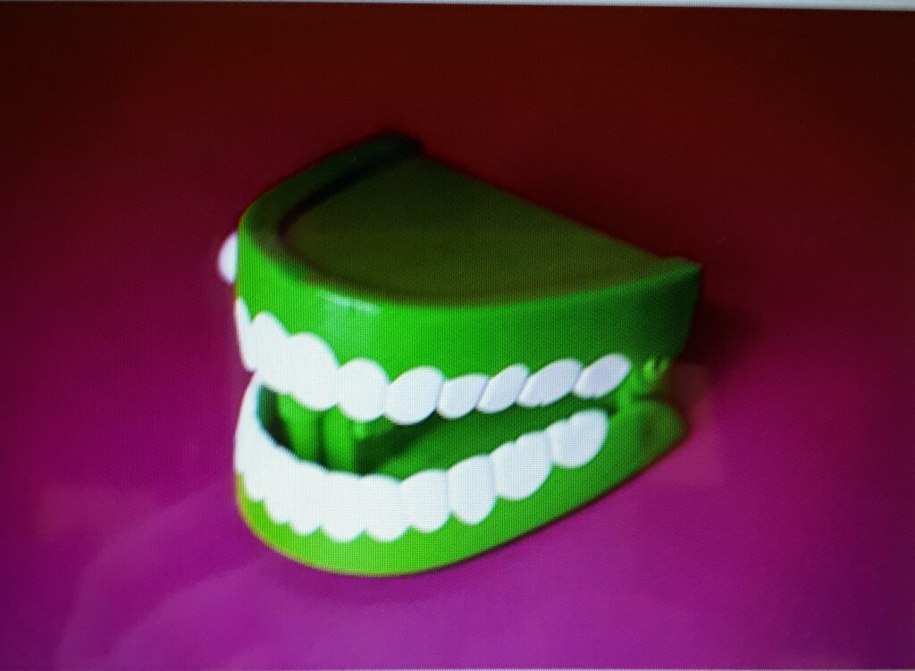 J’avais ma couleur verte, et le dentier comme une cerise sur le gâteau sorte de dédicace à mon coup de pression mise à mon âme depuis la salle d’attente de orthodontiste > le détail du siècle à mes yeux = comment douter après cela ???